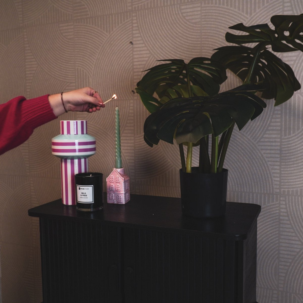 Keramiek - Mintgroen/Neon Roze - 13x13x25cm
