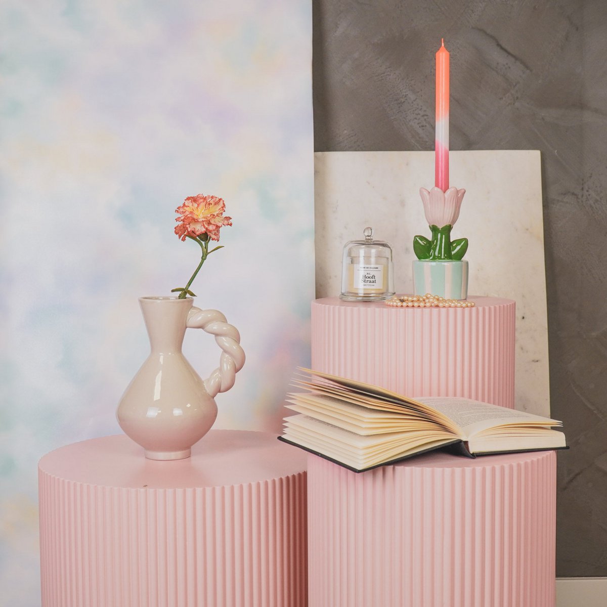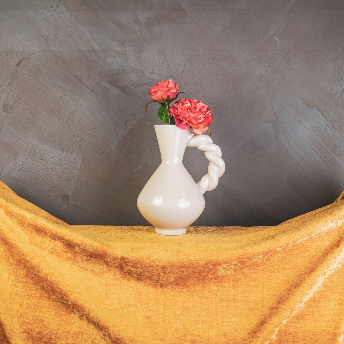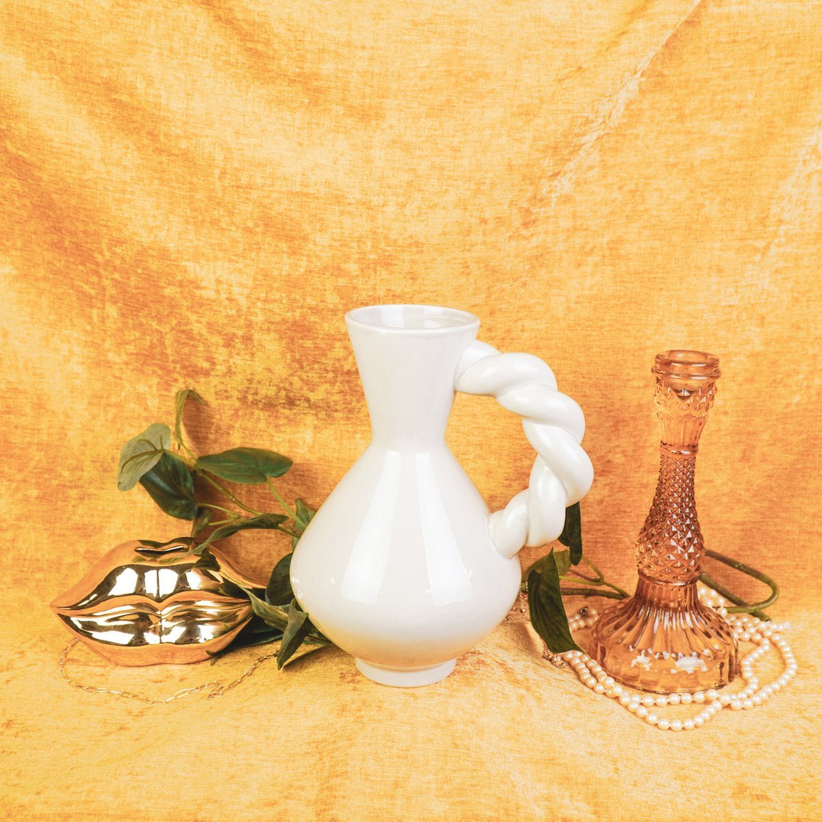 Op zoek naar een unieke vaas of kan om uw interieur te voltooien? Ontdek deze prachtige vaas. Met zijn gedraaide handvat en zandkleurige afwerking is deze vaas een echte blikvanger in elk huis.